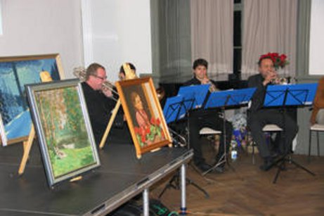 Musikalisch umrahmte ein Bläserquartett der Landesmusikschule mit ihren Darbietungen diesen gelungenen Abend. Die Bühne wurde mit etlichen Originalgemälden Sommerfelds geschmückt, die in dankenswerter Weise von den Besitzern für diesen Abend zur Verfügung gestellt wurden.