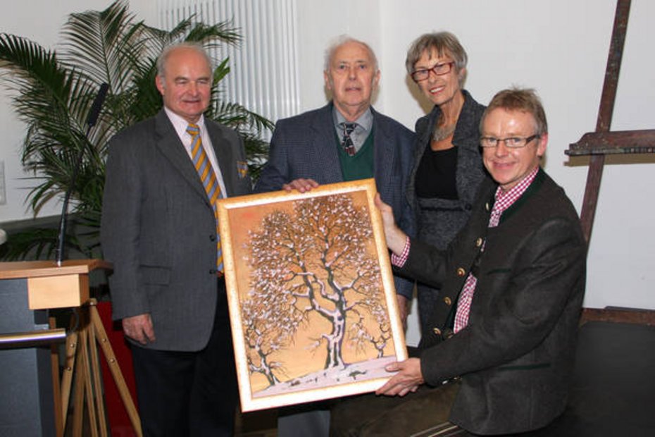 LR Maximilian Hiegelsberger überbrachte die Grüße des Landeshauptmanns und zeichnete im Anschluss den Lebensweg des Künstlers in einfühlsamer Weise nach. Ausgehend von seiner alten Heimat im donauschwäbischen Syrmien und mit vielen Zwischenstationen, die ihn in halb Europa herumführten, endete dieser infolge der Wirrnisse des 2.Weltkrieges im oberösterreichische Hausruckviertel, wo er endlich eine zweite Heimat fand.