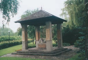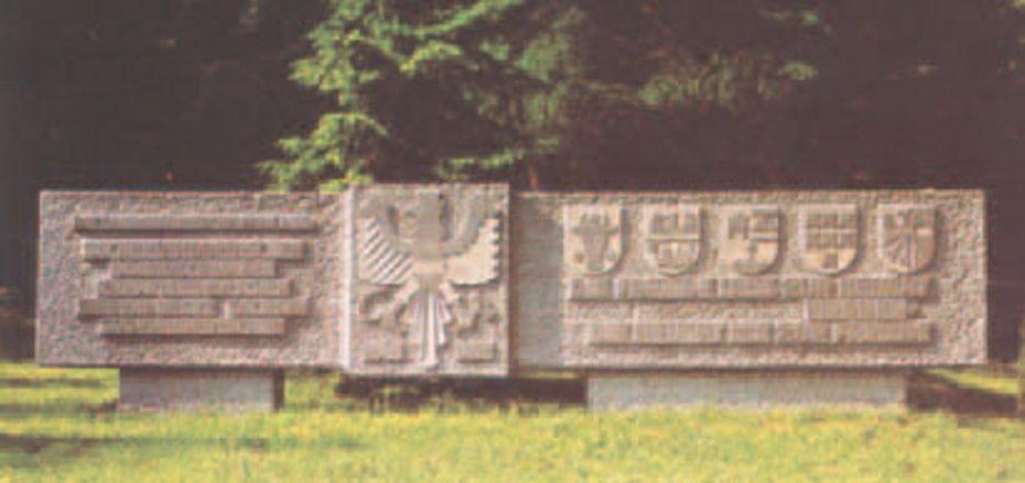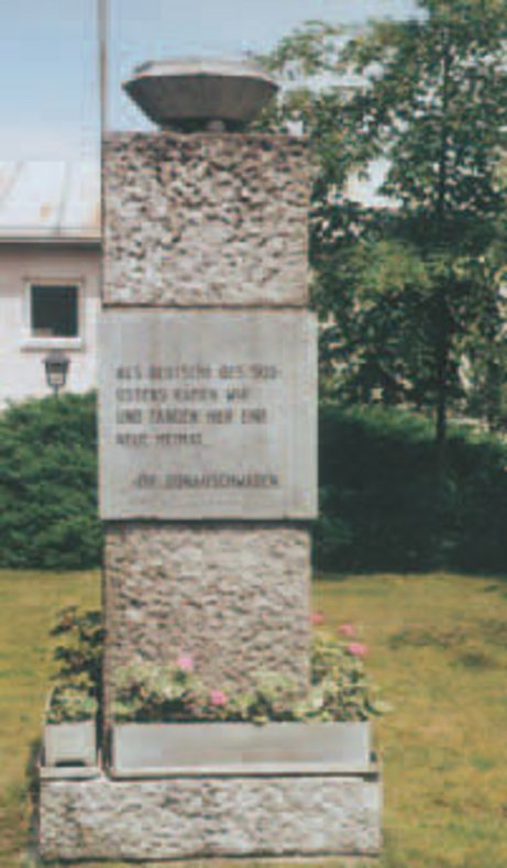 - Heimatgedenkstein vor dem Jugendheim zur Erinnerung an die alte und neue Heimat.