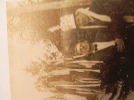 Von rechts: 1.Geldherr Lehrer Hans Holz, Ernsthausen, Kerweihmädl Kirchner Betty, Rudolfsgnad, 2.Geldherr Schneider Wenz, sein Kerweihmädl Kirchner Resi, beide aus Rudolfsgnad.