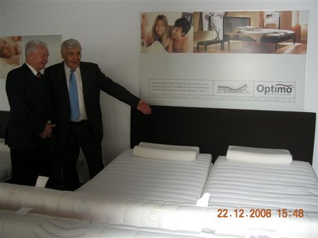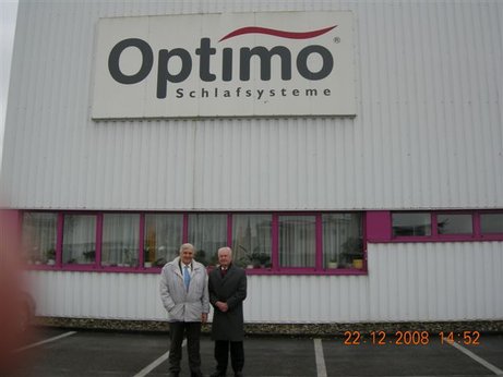 Sowohl über das Unternehmen als auch über die Person unseres großen Gönners, Herrn Alois Kinder haben wir den Anlässen entsprechend schon mehrfach berichtet. Um ihm für seine Großzügigkeit zu danken, aber auch um ihm seine persönliche Reverenz zu erweisen, besuchte ihn LO Ellmer in seiner Firma. Der durch ihre Qualitätsprodukte bekannten Firma Optimo, auf dessen Produkte, in erster Linie Betteinsätze und Matratzen, wir schlafen.